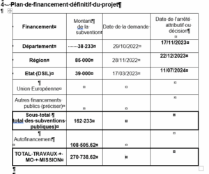 Des subventions ont été obtenues du Département de l’Isère, de la Région Auvergne-Rhône-Alpes et de l’Etat (DSIL) dont le détail figure ci-dessous :